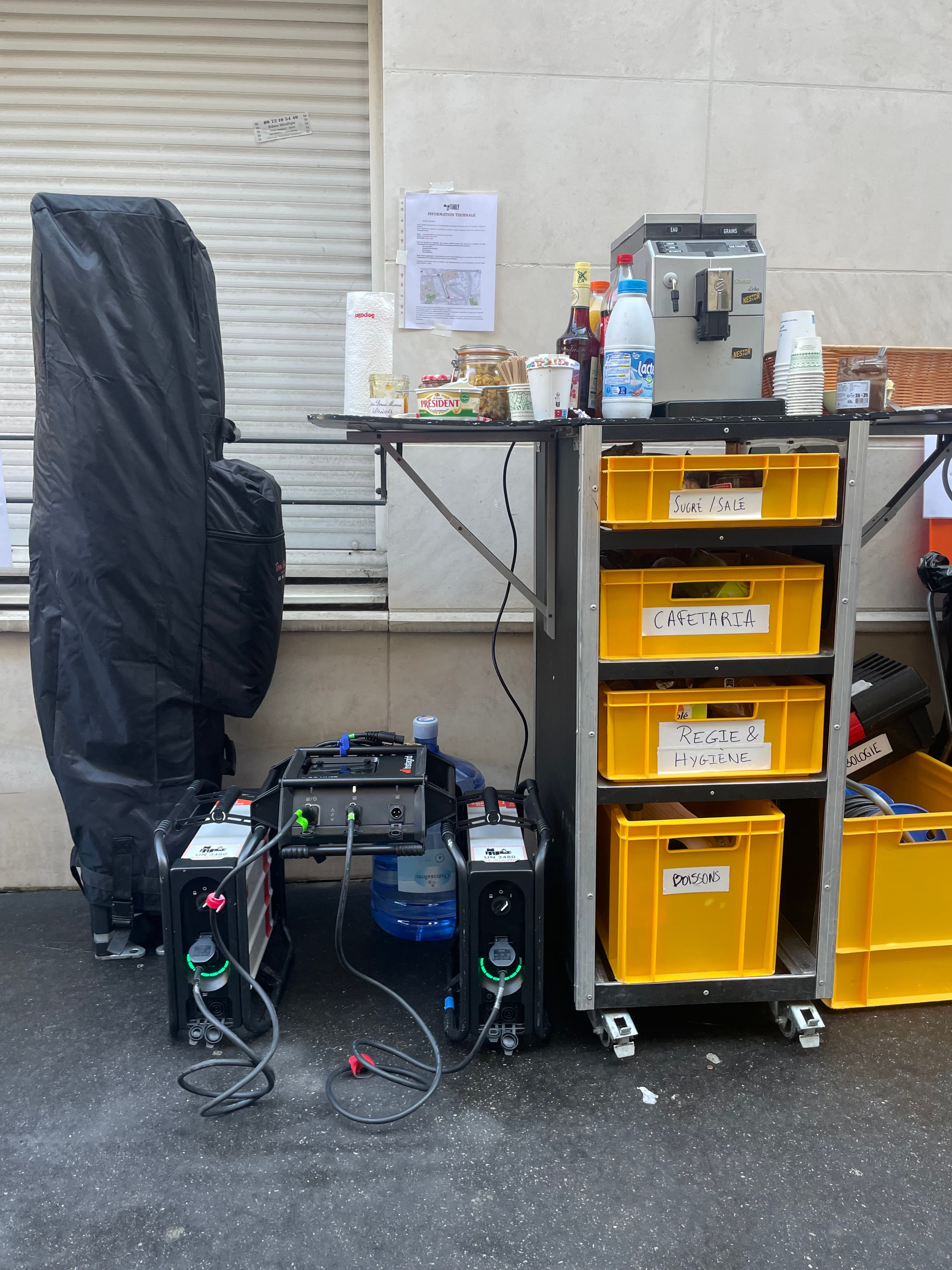 Dans le cas de la série myFAMILY / TF1, tournée dans différents lieux urbains (tels que la place de Rueil-Malmaison ou les rues du 11ᵉ arrondissement de Paris), aucune ligne électrique n’était disponible à proximité. Ce genre de situation est courant. Les productions privilégient de plus en plus les tournages en décors naturels ou dans l’espace public. Or, les séries TV (comme d’autres types de tournages) ont besoin de générateurs électriques performants.