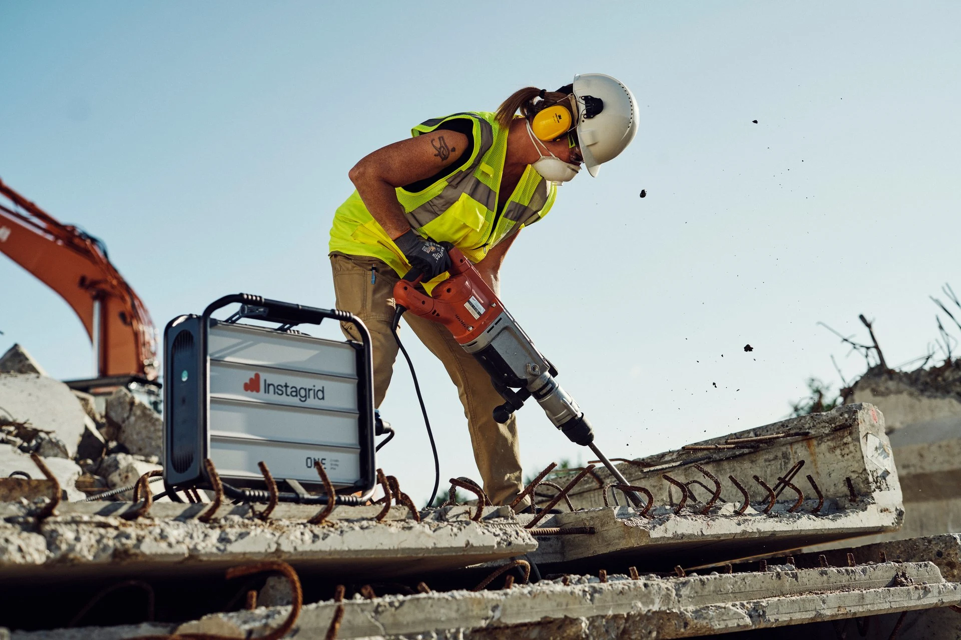 Onze draagbare stroomvoorzieningen verminderen het geluid en de luchtvervuiling op jouw bouwplaats aanzienlijk. Instagrid-producten werken stil op de achtergrond en produceren geen uitlaatgassen. Zonder een generator die de hele dag draait, voorkom je onnodig lawaai en schadelijke emissies. Zo creëer je een veiligere, schonere en comfortabelere werkomgeving. Dat komt jouzelf, mensen in de buurt en het milieu ten goede – of je nu werkt in een voetgangersgebied, een park of op een grote bouwplaats.